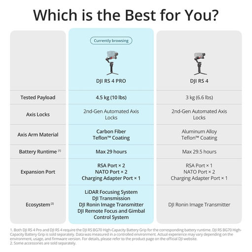 he DJI RS 4 Pro expansive flagship stabilizer integrates seamlessly with the DJI Focus Pro lens control system, DJI Transmission, and an extensive control ecosystem. This synergy empowers the film and television industry with a full-scale production solution that unites stabilization, transmission, monitoring, focusing, and control. It broadens the horizons of creative possibilities, enabling cinematographers to harness their full potential and showcase their skills.
