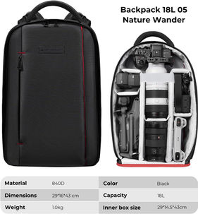 - * 【Dimensions and Capacity】Measuring 29x15x43cm, with a capacity of 18L and weighing only 1kg, this backpack can accommodate two cameras and multiple lenses. It serves as an excellent companion for photography, hiking, mountaineering, travel, and even shopping.